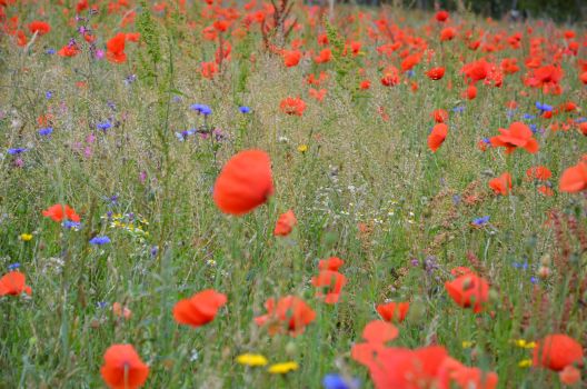 Bei den neuen Blühflächen wurde auf regionale Wildpflanzen gesetzt, da heimische Insekten oft von speziellen Pflanzen abhängig sind. Dafür wurden verschiedene Saatgutmischungen verwendet, die unter wissenschaftlichen und praktischen Aspekten entwickelt und speziell für Münster modifiziert wurden: eine Blumenwiese, eine Schmetterlings- und Wildbienenmischung sowie eine Mischung für feuchte Böden. Sie enthalten nur einen geringen Grasanteil, dafür leuchten im ersten Jahr knallroter Klatschmohn und blaue Kornblumen ins Land.