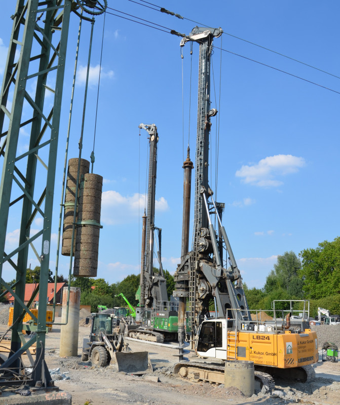 Die Gründung der Bahnüberführung geschah auf 12 Meter langen Bohrpfählen mit jeweils 1,20 Meter Durchmesser. Dipl. Ing. Teigelmeister von der Stadt Münster erinnert daran, dass die Bohrarbeiten bei Temperaturunterschieden von 47 Grad, Minusgraden von 11 Grad im Febr. und Temperaturen von 36 Grad im Sommer durchgeführt wurden.